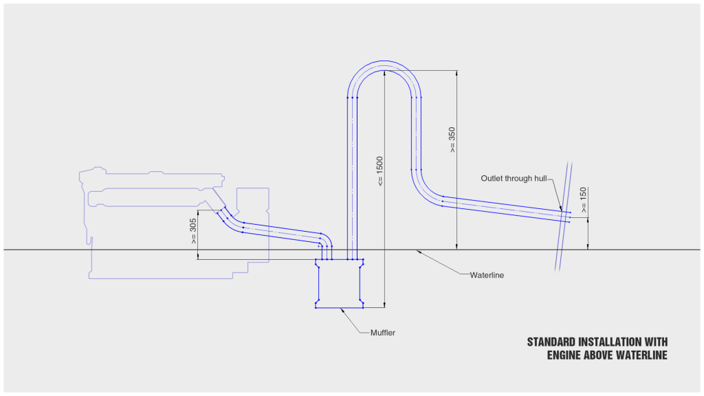 Marine Exhausts Pot Muffler units are round, single chamber and made in sizes from 200mm to 500mm in diameter. These are more than adequate for most requirements. Some units are made to lay on their sides, typically for installations in catamarans.